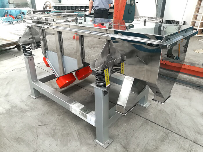 直線振動篩又稱直線篩,是利用振動激振作為振動源,使篩面物料做直線運動。物料從給料機均勻進入篩機進料口,通過多層篩網產生數種規格的篩上物、篩下物,然后從不同出口排出。