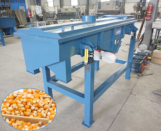 玉米是種農作物,在我們日常生活中,玉米糊糊就是有玉米顆粒加工而成,而玉米顆粒在入庫之前需要經過粉碎,然后在經過對玉米芯中的雜質,玉米芯、小土粒,及不合格的小玉米籽等進行清理,才能入庫,這是就需要用到玉米直線振動篩也叫玉米分級直線振動篩或者是玉米除雜直線篩,由于玉米的特性是無粘性,所以不用考慮堵網的問題,也不需要增加清網的裝置。玉米屬顆粒狀物料,在收入倉庫過程中清除玉米中的雜質(如玉米芯、土塊)及對玉米籽進行分級,清除不合格的小玉米籽等是很有必要的,這樣可以使玉米顆粒均勻,便于儲存,易于下步生產使用。直線振動篩可以分篩出玉米里的這些雜質,在選擇篩網數目時要根據合格的玉米直徑來選擇適合的網篩目數,并依據處理量選擇篩機是型號。把需要篩分的玉米放進直線振動篩的進料口后,振動電機會將振動力量傳導到篩面,這時玉米籽會在篩箱里做直線式的跳躍運動,將玉米籽中較大的東西留在篩面上,并順著出料口排除,玉米籽就會進入下層篩面,做如上的跳躍式動作,比玉米籽小的雜質或不合格品透過這層篩網,成為篩下物,玉米籽由出料口排出。