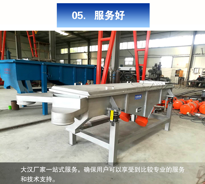 大漢多層直線振動篩廠家在選材上精益求精,保證每次進廠的原材料及相關材料都是進行質量檢測合格之后才使用的,其他廠家的多層直線振動篩板材厚度般在4mm-5mm之間,而我們的設備板材厚度直維持在10mm-12mm,設備安全性更高,運行更加平穩。