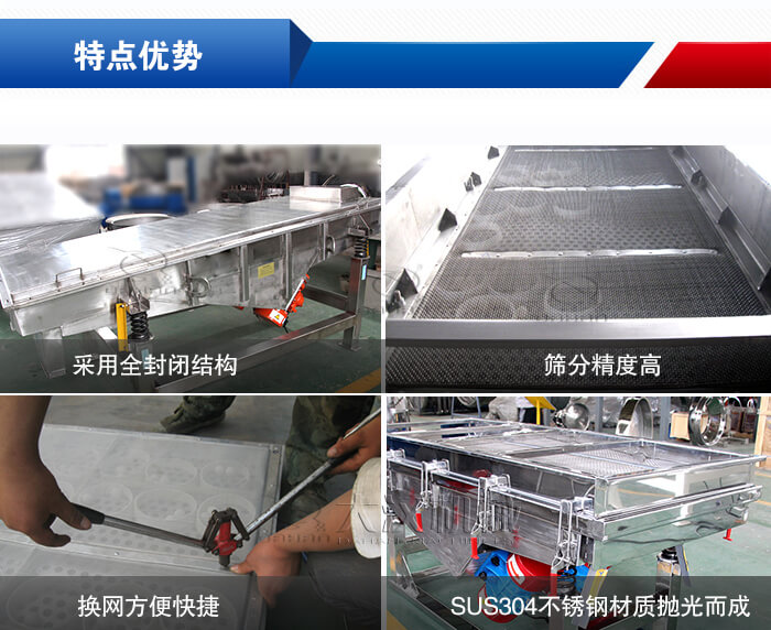 食品直線振動(dòng)篩采用SUS304不銹鋼材質(zhì),因?yàn)槭称贰⑨t(yī)藥行業(yè)對(duì)衛(wèi)生標(biāo)準(zhǔn)要求比較嚴(yán)格,與物料接觸部分不允許有任何雜質(zhì)污染,振動(dòng)篩密封件配備食品哈孤兒衛(wèi)生標(biāo)準(zhǔn)。振動(dòng)篩密封件材質(zhì)要選擇硅膠材質(zhì)。所以該設(shè)備也叫食品衛(wèi)生振動(dòng)篩。食品直線振動(dòng)篩該設(shè)備干凈、衛(wèi)生、無(wú)死角,全部進(jìn)行剖光處理,達(dá)到食品行業(yè)衛(wèi)生標(biāo)準(zhǔn)。