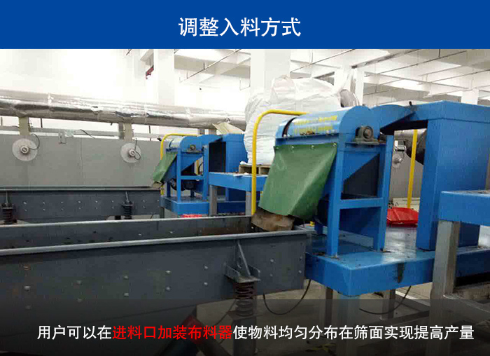 在玉米篩選過程中如給料不均勻,入料時不是沿全網(wǎng)寬度給入就會造成篩面利用率不充分從而降低產(chǎn)量和篩分精度。對于這問題用戶可以在進料口加裝布料器使物料均勻分布在篩面實現(xiàn)提高產(chǎn)量的要求,如無條件增加布料裝置可以在人工投料時注意均勻分散。