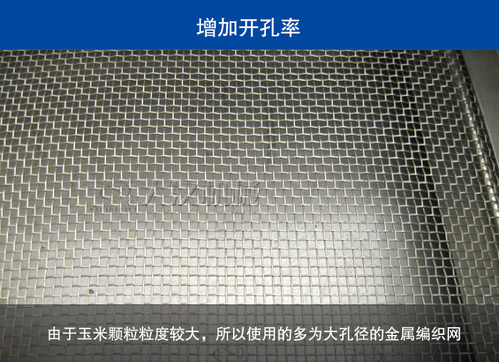 由于玉米顆粒粒度較大,所以使用的多為大孔徑的金屬編織網(wǎng),在生產(chǎn)過程中想要提高產(chǎn)量也可以更換較之前孔徑較大的篩網(wǎng)進行生產(chǎn),這樣也可以有效的提高玉米直線振動篩的產(chǎn)量。