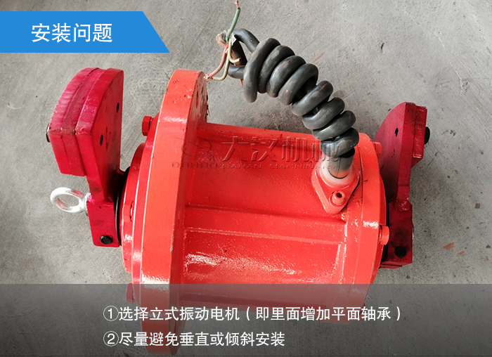 預(yù)防措施:①選擇立式振動(dòng)電機(jī)(即里面增加平面軸承);②盡量避免垂直或傾斜安裝。