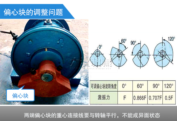 調(diào)整偏心塊時(shí),誤把兩端偏心塊的方向調(diào)反,使振動(dòng)電機(jī)產(chǎn)生個(gè)空間扭矩,使振動(dòng)電機(jī)在非正常狀態(tài)下工作,進(jìn)而引起燒毀。因此調(diào)整偏心塊時(shí),定要注意其對(duì)稱性,即兩端偏心塊要兩兩對(duì)應(yīng),或者說是兩端偏心塊的重心連接線要與轉(zhuǎn)軸平行,不能成異面狀態(tài)。