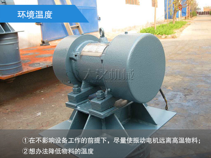 預(yù)防措施:①在不影響設(shè)備工作的前提下,盡量使振動(dòng)電機(jī)遠(yuǎn)離高溫物料;②想辦法降低物料的溫度。