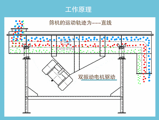 不銹鋼直線振動篩工作原理可分為動力來源、運動傳遞、物料分離三個環(huán)節(jié),雙軸振動電機為設(shè)備提供動力、篩體作直線往復(fù)振動進行動力傳遞,在直線振動和篩面傾角的共同作用下,會經(jīng)歷分層-透篩-分離的過程。