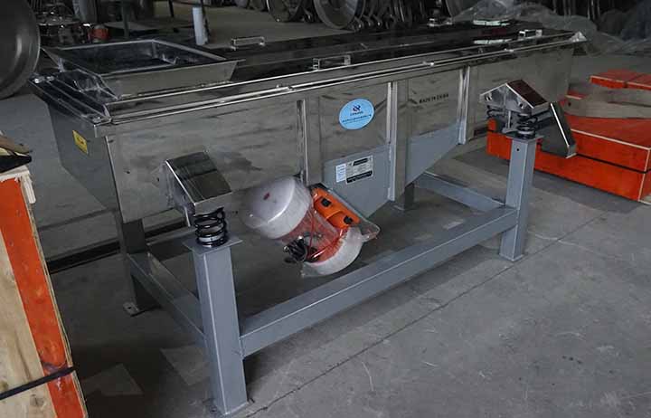 不銹鋼直線振動篩的篩面通常設(shè)計為5°-15° 的微小傾角,通過2-5 層不銹鋼篩網(wǎng)把濕的、易腐蝕的物料篩分為400目以內(nèi)。